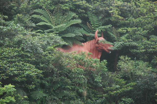 在洞口的上方還有一座很大的紅牛,不過雜草叢生,已經快被淹沒