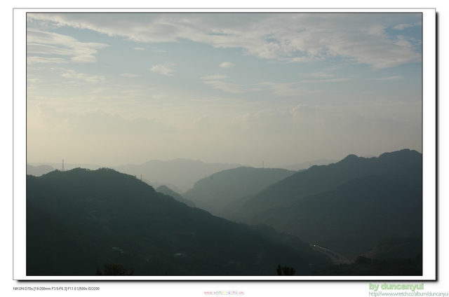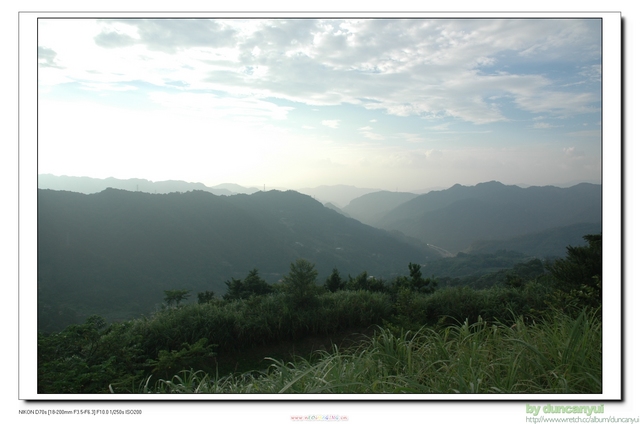 山頂上石碇鄉公所設立了一座平台,這裡已經接近坪林鄉界,居高臨下,剛剛下過雨的台北一陣陰霾,夕陽已經要西落,加上新鮮的空氣,十分的愜意!