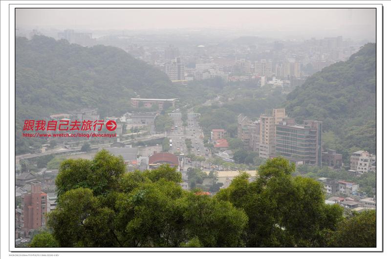 走上石階後,廟前畫面豁然開朗!眼下可以看見的是外雙溪地區的風景,遠方則是可以看見關渡地區,在能見度不佳的情況下,遠方的洲美焚化爐還是可以看見,能想見天氣好時大景的清晰!在準備進入廟內「探險」前,我特別先在廟前拍風景,緩和一下緊張的情緒。